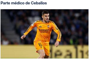 在今天對(duì)我們球員達(dá)尼·塞巴略斯進(jìn)行的檢查后,皇家馬德里醫(yī)療服務(wù)部門(mén)診斷出他左腿半膜肌受傷,并伴有肌腱受損。具體恢復(fù)情況尚待觀察。