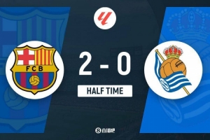 上半場比賽結(jié)束,巴塞羅那2-0皇家社會。