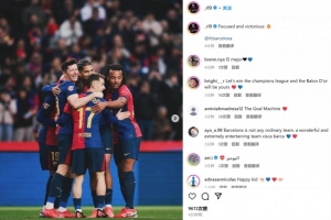 萊萬本賽季37場已經(jīng)打進(jìn)33球,他也在賽后通過社媒曬出自己和隊友們相擁慶祝的合照,并配文:“保持專注,贏得勝利@巴薩俱樂部”。