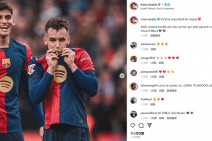卡薩多也通過社媒曬出自己親吻隊徽的照片,并配文:“球隊拿下重要的勝利!我非常高興能夠打進(jìn)巴薩生涯處子球,巴薩萬歲!”