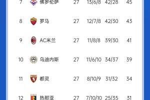 此役后,積分榜上羅馬升至第8,米蘭跌至第9!