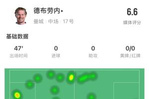 體育資訊12月29日訊 曼城半場1-0萊斯特城,德布勞內(nèi)半場數(shù)據(jù)如圖。