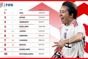 體育資訊3月6日訊 國際足聯(lián)公布最新一期女足世界排名,中國女足排名未變,仍位列第17位,美國女足居首,日本女足上升3位至第5位。