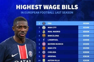體育資訊3月7日訊 歐足聯(lián)不久前公布了各俱樂部上賽季薪資情況,《轉(zhuǎn)會市場》也就此列出了榜單,巴黎居首。