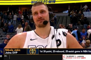 賽后,約基奇接受了記者采訪。談到自己今天歷史性的數(shù)據(jù),他說道:“當(dāng)我退役后,躺在沙發(fā)上,想到我曾經(jīng)打出過這樣一場好比賽,那感覺是很好的。我們明天還有背靠背的比賽,我現(xiàn)在要去恢復(fù)了?!?/p>
