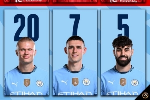 曼城:哈蘭德20球,福登7球,格瓦迪奧爾5球