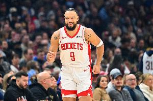 火箭本場四面開花,除了阿門和杰倫-格林之外,還有5人得分上雙,其中三人更是砍下20+。具體為狄龍27分4板3助(14投9中,三分11投7中,罰球2罰2中)、伊森12分2板1助(11投6中,三分3中0)、申京20分5板6助2斷2帽(11投7中,罰球7罰6中)、賈巴里-史密斯14分5板2斷(9投6中,三分4投2中)、霍勒迪20分4板2助(14投7中,三分9投4中,罰球2罰2中)。