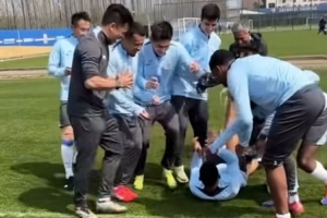 體育資訊3月10日訊 昨天是申花外援安德烈-路易斯的31歲生日。另一名申花外援米內(nèi)羅更新社媒,曬出球隊(duì)在訓(xùn)練時(shí)為路易斯慶祝的視頻。