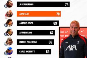 英超主帥執(zhí)教前29場比賽的最高積分排行: