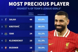 體育資訊3月11日訊 《轉(zhuǎn)會(huì)市場(chǎng)》統(tǒng)計(jì)了本賽季五大聯(lián)賽直接參與進(jìn)球占全隊(duì)總進(jìn)球的比率情況,薩拉赫無懸念居首,已經(jīng)轉(zhuǎn)會(huì)曼城的馬爾穆什依然是法蘭克福隊(duì)內(nèi)最高。