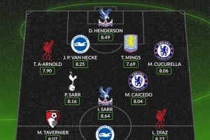 后衛(wèi):阿諾德(利物浦,7.90分)、范赫克(布萊頓,8.25分)、明斯(維拉,7.69分)、庫(kù)庫(kù)雷利亞(切爾西,8.06分)