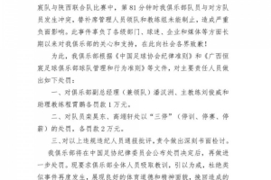 一、對(duì)俱樂(lè)部副總經(jīng)理(兼領(lǐng)隊(duì))潘漢洲、主教練劉俊威和助理教練程霄鵬各罰款1萬(wàn)元。