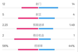 全場(chǎng)比賽數(shù)據(jù)如下(國(guó)米在前):