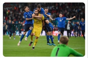 賽后,意大利國(guó)家隊(duì)官推曬出了2020歐洲杯決賽多納魯馬撲出決勝點(diǎn)球的瞬間,并寫(xiě)道:“有些事情永遠(yuǎn)都不會(huì)改變”。當(dāng)時(shí)意大利隊(duì)與東道主英格蘭隊(duì)在決賽戰(zhàn)至點(diǎn)球大戰(zhàn),三獅軍團(tuán)第4、5順位出場(chǎng)的桑喬和薩卡的點(diǎn)球都被多納魯馬擋出,英格蘭隊(duì)無(wú)緣隊(duì)史首座歐洲杯冠軍。繼那屆歐洲杯之后,多納魯馬再次給英格蘭足球送上一記“重?fù)簟薄?/p>