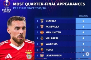 體育資訊3月14日訊 歐聯(lián)杯16強(qiáng)戰(zhàn)戰(zhàn)火重燃,《轉(zhuǎn)會(huì)市場(chǎng)》也統(tǒng)計(jì)了自09-10賽季改制后的歐聯(lián)杯晉級(jí)八強(qiáng)次數(shù)情況,塞維利亞屈居次席。