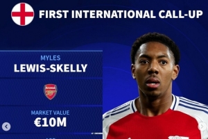 斯凱利(阿森納,英格蘭),1000萬(wàn)歐,18歲。25場(chǎng)1球0助攻