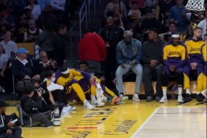 據(jù)現(xiàn)場球迷拍攝的畫面,詹姆斯要求布朗尼為自己讓出板凳席末端的座位,布朗尼隨后坐在場邊的地板上。