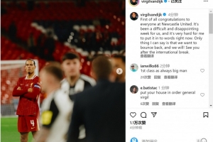 利物浦隊長范迪克社媒曬出自己賽后失落的照片,并寫道:“首先祝賀紐卡的每個人。對我們來說,這是艱難而令人失望的一周,現在我很難用言語來表達感受。我唯一能說的是,我們希望重新振作,我們會的!國際比賽日后再見?!?/p>