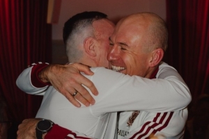 今天,拜仁傳奇隊集合,拉姆、范博梅爾、馬特烏斯、布特、羅本、里貝里等人亮相,拉菲尼亞還與其他幾支球隊的傳奇合影留念。值得一提的是,拜仁官方還曬出了羅本和里貝里握手致意以及擁抱的照片。