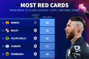 德轉(zhuǎn)列球員染紅次數(shù)排名(一級(jí)+二級(jí)聯(lián)賽+杯賽+國(guó)家隊(duì)):