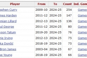 據(jù)統(tǒng)計,這是特雷-楊生涯第67次單場砍下至少30分且投進至少5記三分,他也追平詹姆斯排在歷史第8位。
