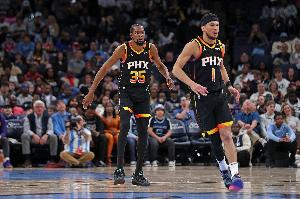 目前太陽戰(zhàn)績?yōu)?3勝37負(fù),排名來到西部第十。