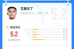 賽后吧友給艾菲爾丁打出5.2的評分↓
