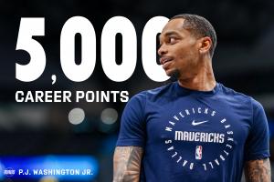 比賽進(jìn)行到第一節(jié)10分02秒時(shí),PJ-華盛頓一記底角三分命中,個(gè)人生涯得分突破5000分。
