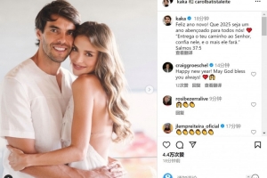 卡卡在社交媒體上曬出與妻子的合照,并配文:“新年快樂!愿2025年對(duì)我們所有人來(lái)說(shuō)都是幸福的一年!”