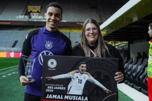 此外,在去年歐國聯(lián)德國7-0波黑的比賽中,穆西亞拉當(dāng)選了全場最佳球員,他在昨天一起領(lǐng)取了這兩座獎杯。