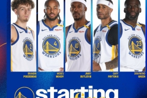 勇士首發(fā):波杰姆斯基、穆迪、小加里-佩頓、巴特勒、追夢格林。