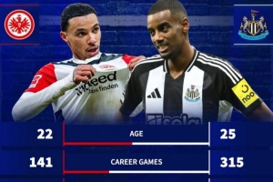 伊薩克(紐卡斯?fàn)枺?5歲):生涯315場(chǎng)140球28助攻,本賽季直接參與28球,德轉(zhuǎn)身價(jià)1億歐元