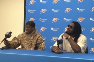 賽后雷霆球員杰倫-威廉姆斯和多特出席了新聞發(fā)布會(huì),杰倫威表示:“我們經(jīng)常依賴多特的表現(xiàn),他每場都負(fù)責(zé)盯防對方最強(qiáng)的球員。能持續(xù)保持這樣的高強(qiáng)度防守,簡直讓人不可思議。”