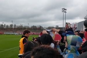 體育資訊4月1日訊 據(jù)記者Nico Linner報(bào)道,拜仁的公開訓(xùn)練后,眾多球迷找穆勒簽名。
