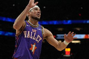 前三節(jié)比賽,獨(dú)自帶隊(duì)的太陽球星布克表現(xiàn)出色,二、三節(jié)單節(jié)得分都上雙,投籃26中12,三分球10中3,罰球5中5,轟下32分2籃板6助攻的數(shù)據(jù),不過有5次失誤,但這樣的表現(xiàn)球隊(duì)仍落后12分。