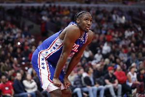 此役76人后衛(wèi)馬克西出場(chǎng)42分鐘23投10中,三分10中3、罰球4中4拿到27分2籃板6助攻5搶斷,有4失誤,正負(fù)值-9。