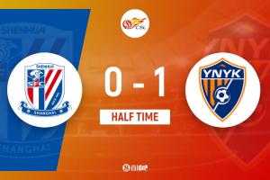 上半場(chǎng)補(bǔ)時(shí)2分鐘,申花0-1云南玉昆。