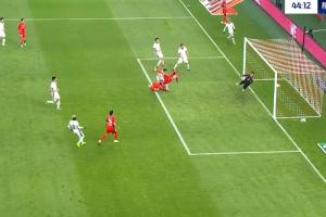 體育資訊04月02日訊 中超第4輪,上海海港vs梅州客家,上半場第45分鐘,萊昂納多和李圣龍門前搶點,李圣龍頭球俯沖破門,海港2-0領先!