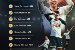 熱刺官推寫道:“孫興慜又一個(gè)里程碑!我們的7號(hào)球員今日加入熱刺隊(duì)史僅7人的‘出場(chǎng)450次’專屬俱樂(lè)部?!?/p>