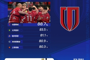 體育資訊4月7日訊 中超聯(lián)賽官方公布了第5輪傳球成功率排行榜,在對陣大連英博海發(fā)的比賽中,成都蓉城的傳球成功率為88.7%,位列本輪第一。