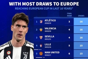 獲歐戰(zhàn)資格球隊(duì)平局榜: