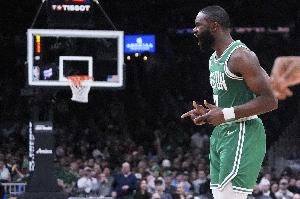 本場(chǎng)比賽,波爾津吉斯19中11,三分13中8(8記三分平生涯最高)轟下平賽季最高的34分,外加4籃板3助攻1搶斷1蓋帽。杰倫-布朗得到6分5籃板1助攻。