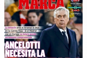 西班牙媒體《馬卡報》最新一期的封面人物為安切洛蒂,媒體指出,這位皇馬主帥需要帶隊逆轉(zhuǎn),如果本賽季歐冠出局,他的帥位將面臨嚴重危機。