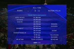 體育資訊4月10日訊 在歐冠淘汰賽首回合,巴黎3-1擊敗維拉,以下為雙方球員本場(chǎng)跑動(dòng)距離最長(zhǎng)的情況: