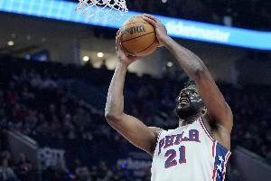 第三節(jié)比賽,恩比德10中4得到15分6籃板,罰球9中6。
