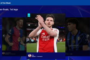 賴斯在投票評選中擊敗了克瓦拉茨赫利亞、萊萬以及巴斯托尼,成功當(dāng)選本周歐冠最佳球員。
