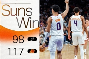 體育資訊4月12日訊 NBA常規(guī)賽,太陽(yáng)117-98擊敗馬刺。