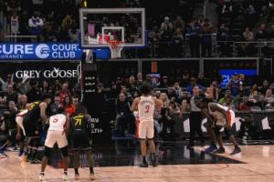 隨后活塞發(fā)球出來,比斯利絕平三分沒有,比賽結(jié)束!