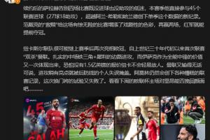 詹?。豪m(xù)約后的薩拉赫告別四場比賽既沒進(jìn)球也沒助攻的低迷,本賽季他直接參與45個聯(lián)賽進(jìn)球(27球18助攻),超越阿蘭-希勒和哈蘭德創(chuàng)下單季這個數(shù)據(jù)的新紀(jì)錄。范戴克的“救贖”給這場有驚無險的比賽增添了戲劇性的色彩,再贏兩場,紅軍就能提前奪冠。