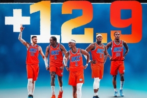備注:此前紀(jì)錄由71-72賽季的湖人保持,場(chǎng)均凈勝12.28分